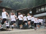 夕方、多くのボランティアスタッフが待ち受ける中、小菅村に到着しました。45畳の部屋で一緒に寝泊まりする、12人の共同生活がスタートしました。