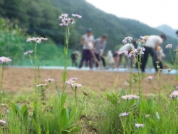 8月12日(水) 学生ボランティアスタッフによる里山講座と小菅講座、そばの種をまき