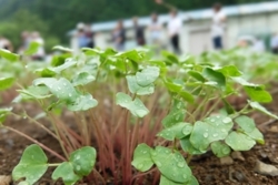 午前中は学びのまとめと行動計画作り。小菅村で学んだことをまとめ、村の暮らしが持続可能な社会のモデルであることを確認し、実際にプログラムの後に、自分たちの地域で何ができるのか、グループで話し合い、行動計画として発表しました。その後、一週間前にまいたそばの畑に行きました。元気に芽が出ていて、自分がまいて芽ばえたそばをうれしそうに見ていました。午後は、最後のシェアリング。一人一人に対し、2 週間一緒に過ごす中で深めた絆を感じながら、全員からメッセージを伝え、長時間にわたりました。