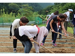 山梨県清里高原と小菅村での2週間、自然にふれ、畑仕事、そばうち、草履作りなどの暮らしの知恵や技を村の人から教わったり、村の環境保護や地域の課題への取り組みを学んだりすることを通して、持続可能な社会、地域のあり方を一緒に考え、学んだことを自分の地域で活かすための行動計画を作りました。
