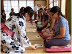 8月11日(火) 小菅村着、オリエンテーション、共同生活のルール作りの後、茶道体験